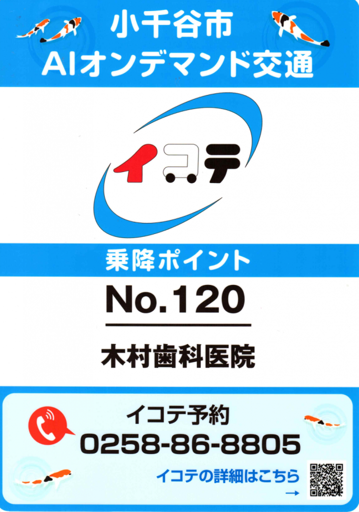 2025.10.29 AIオンデマンド交通「イコテ」No.120 category: ニュース AIオンデマンド交通イコテの運用が開始されております。 当院はNo.120で登録されております。 医院玄関のサイネージに掲示しております。 Tweet